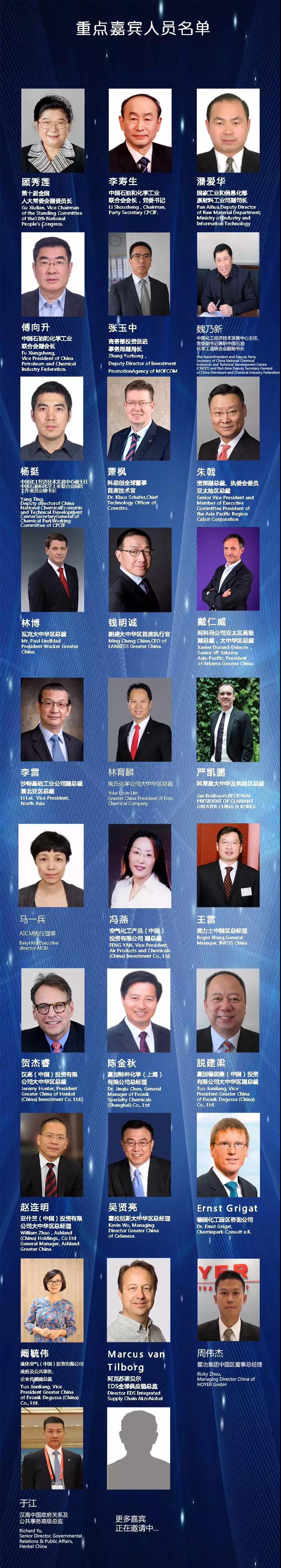 另有100多家化工园区重量级领导及国内外知名化工企业领导参会,参会名单将于近期发布,敬请关注!