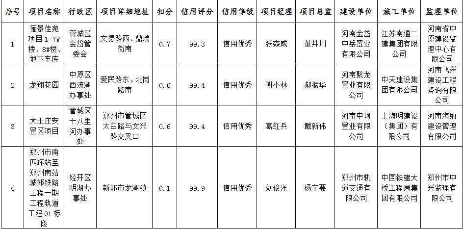 1 | 河南省中原建设监理中心有限公司 | 严伟平 | 0.7 | 99.3 | 信用优秀 |